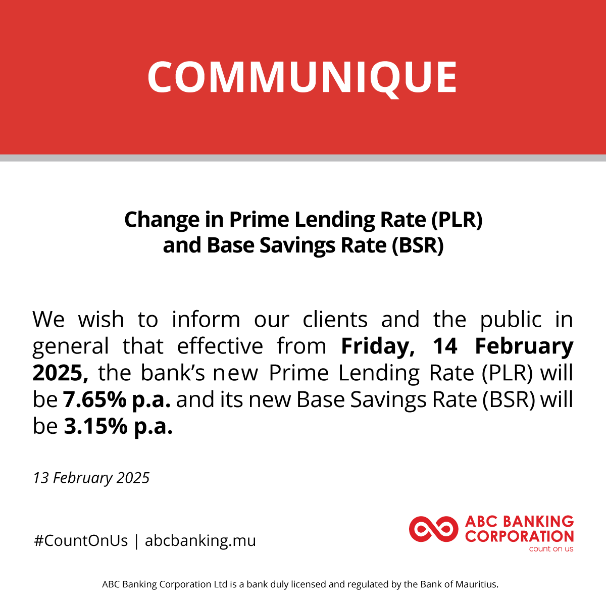 Communique – Change in Prime Lending Rate (PLR) and Base Savings Rate (BSR)